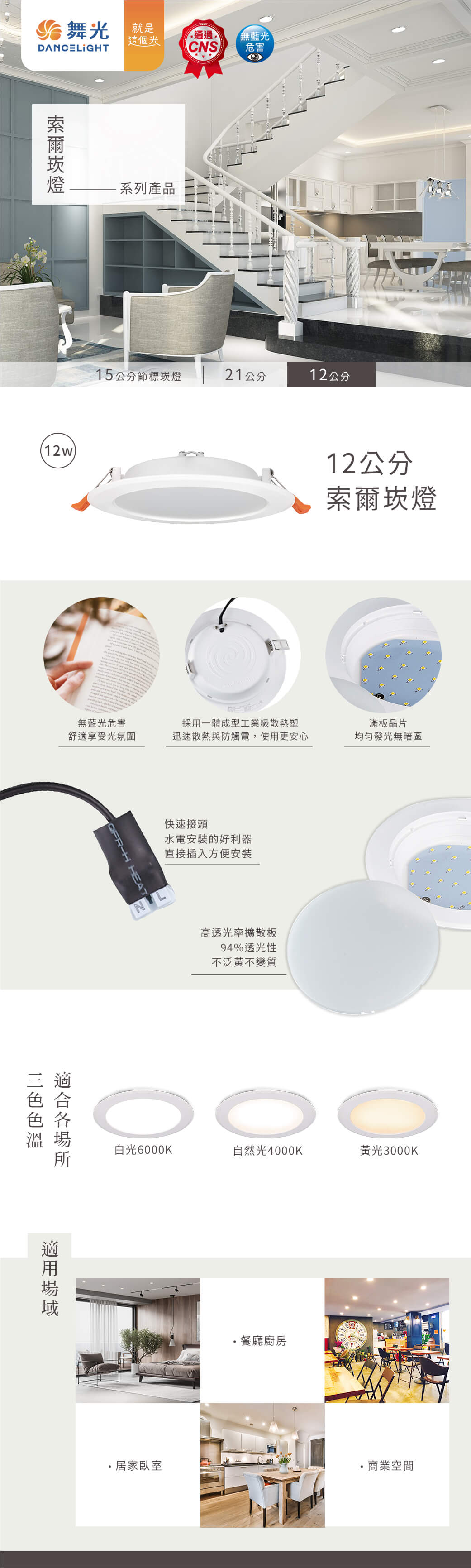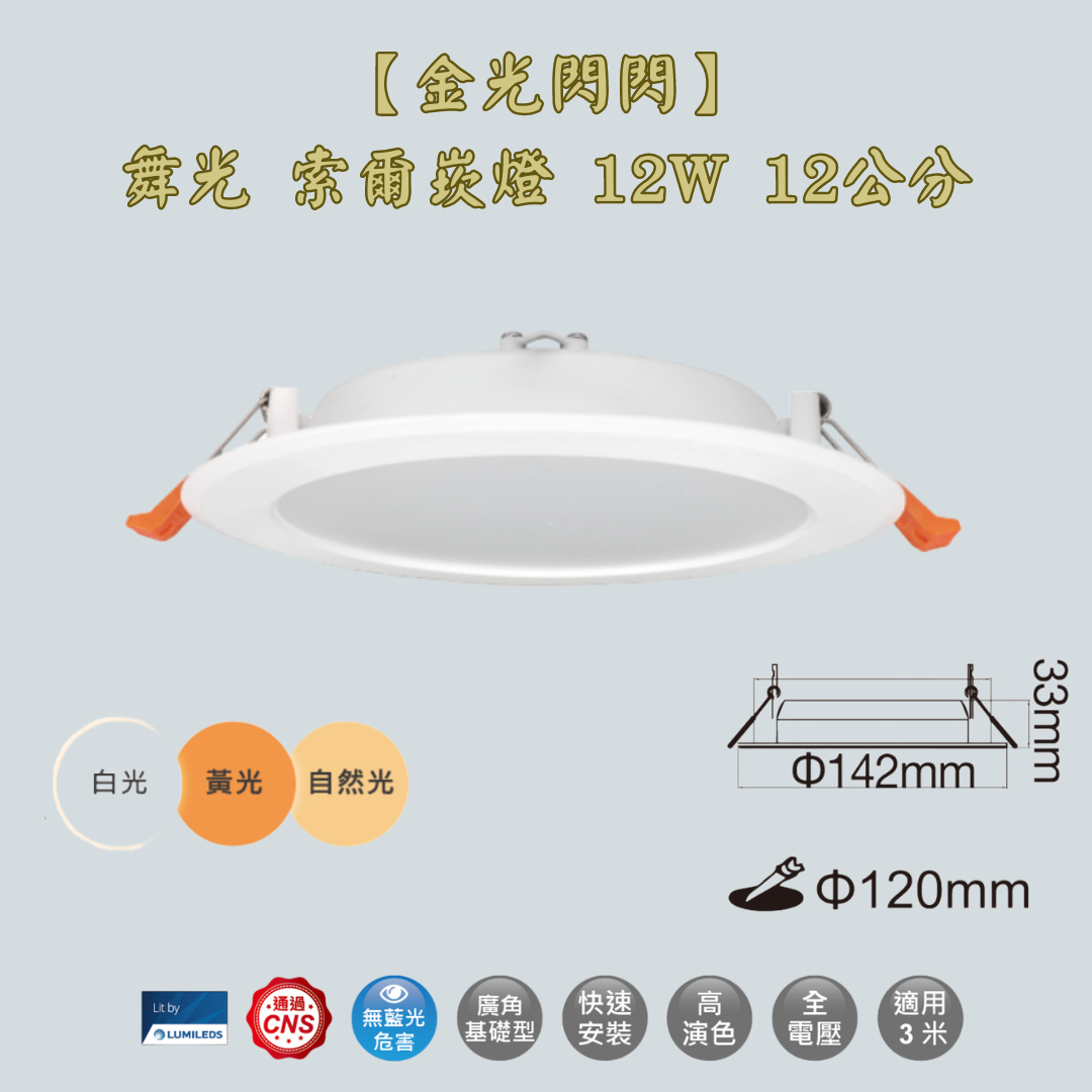 | 規格 | 12W 6500K, 12W 4000K, 12W 3000K |